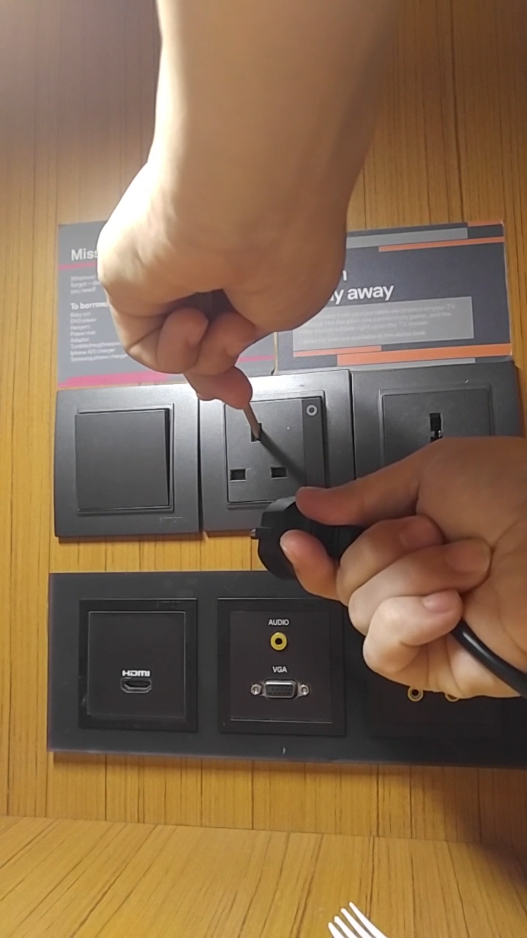 같은 방식대로 접지구에 나무막대를 넣고 콘센트를 꽂아봤더니 잘 꽂혀졌다.